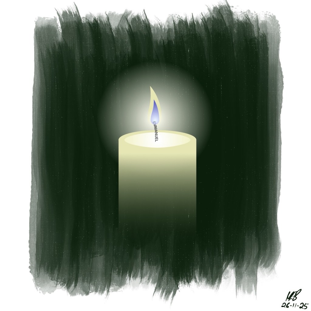 However, John’s gospel also says that the Word is a light that “shines in the darkness” – now that I can draw. So, like countless others before me who were inspired by similar words, I have drawn a candle shining in the darkness, with the word “Emmanuel” squeezed onto the wick.