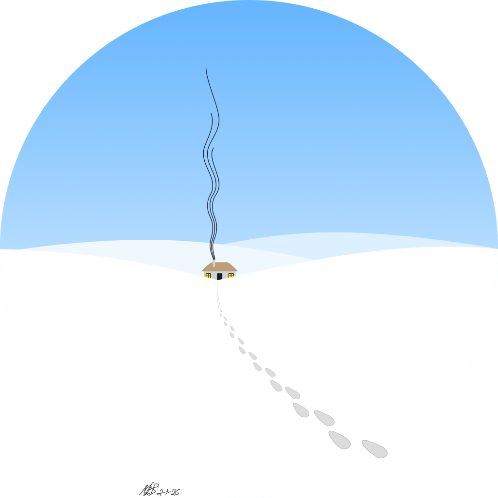 It snowed here today, so I drew this little scene from my head before the inspiration faded along with our thawing snow …